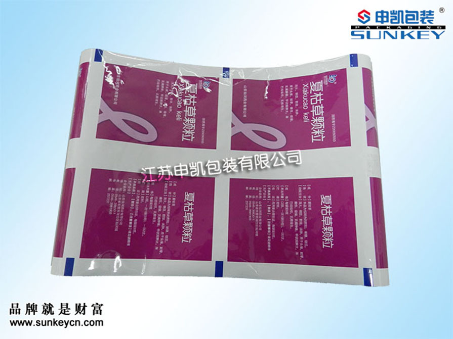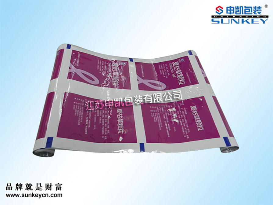 說明:彩色印刷顆粒包裝卷膜材質(zhì)一般是由PET/AL/PE組成,經(jīng)過復(fù)合-熟化-分切多層工藝。