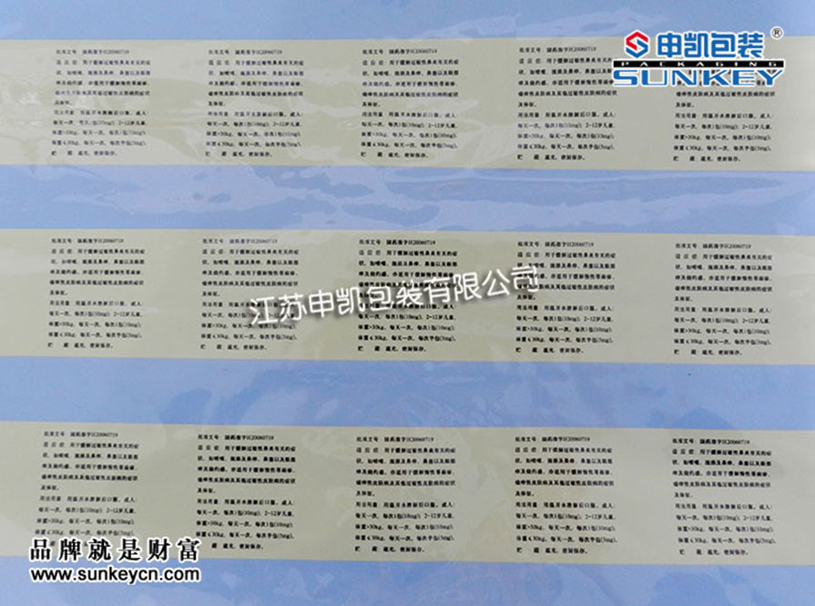 藥用包裝:PET/AL/PE PET/AL/PET/PE PET/AL/NY/PE等。